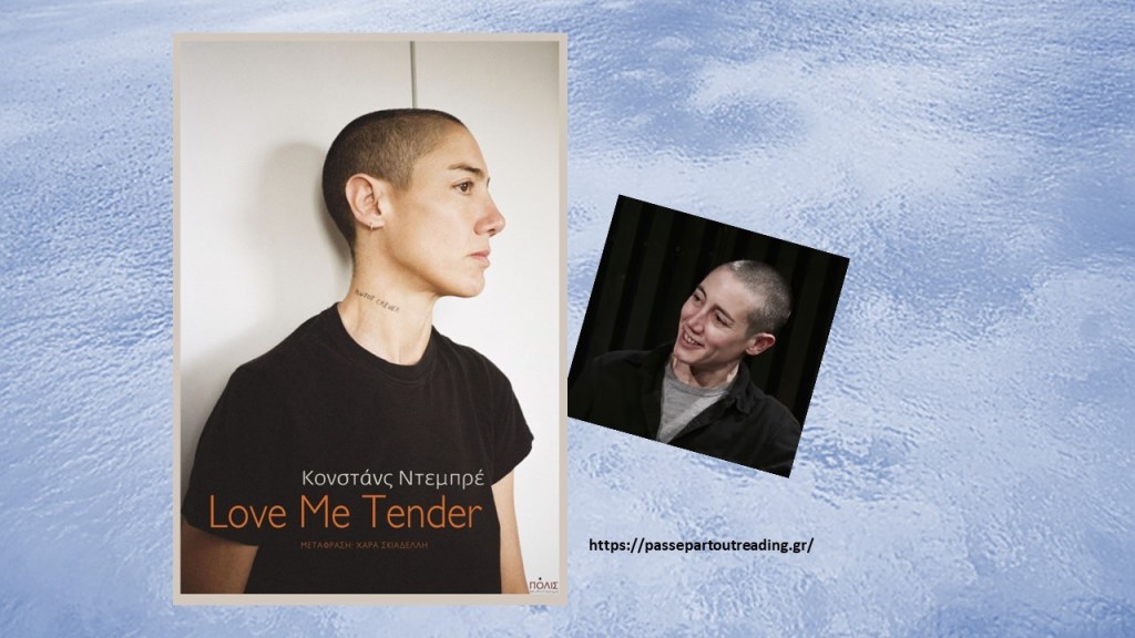 Η Κονστάνς Ντεμπρέ (Constance Debré,  Παρίσι 1972 – ) στη σύντομη μυθιστορηματική αυτοβιογραφία της με τίτλο Love me tender που κυκλοφορεί από τις εκδόσεις ΠΟΛΙΣ σε μετάφραση Χαράς Σκιαδέλλη εξερευνά τα θέματα της κοινωνικής τάξης, των νόμων, της ομοφυλοφιλίας και της μητρότητας μέσα από τον αγώνα μιας γυναίκας που αντιμετωπίζει μια κοινωνία προσκολλημένη στις συμβάσεις της που απειλεί να καταστρέψει τη σχέση μητέρας-παιδιού.
