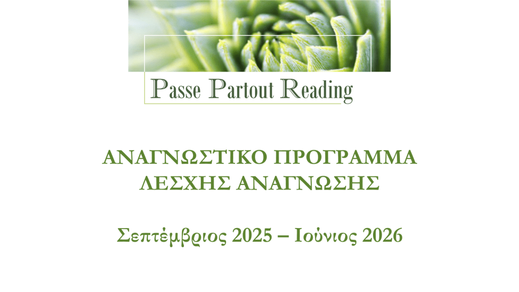 Για τη συμμετοχή σας στην Λέσχη Ανάγνωσης Passe Partout Reading επικοινωνήστε στο mail : passepartoutreading@gmail.com